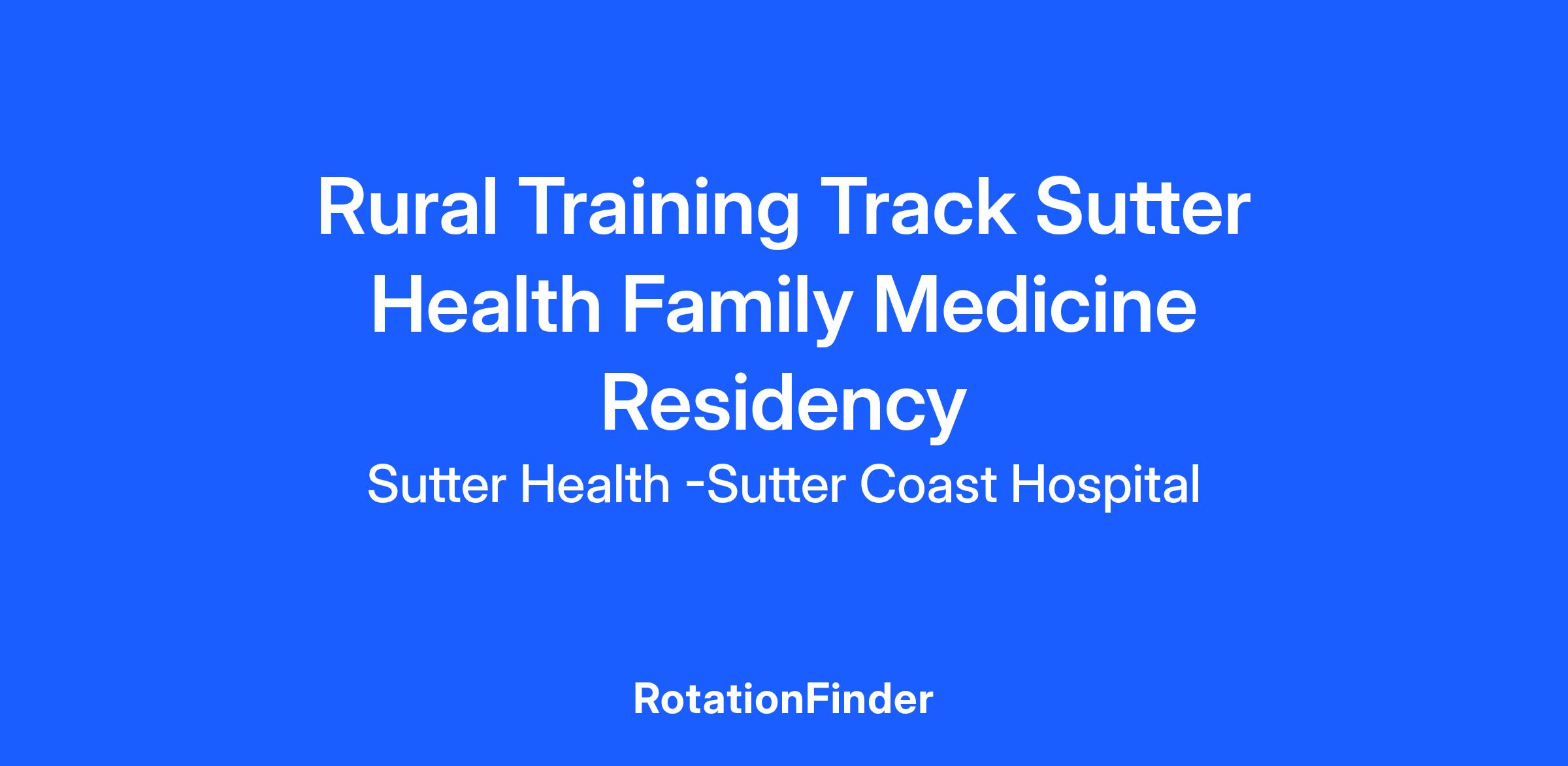 The Sutter Coast Hospital Family Medicine Rural Training Track offers a dynamic, community-focused residency designed to prepare physicians for the unique rewards and challenges of rural healthcare. Residents begin their first year at a busy urban medical center in Sacramento, where they build a strong clinical foundation working with diverse patient populations across a wide range of specialties.