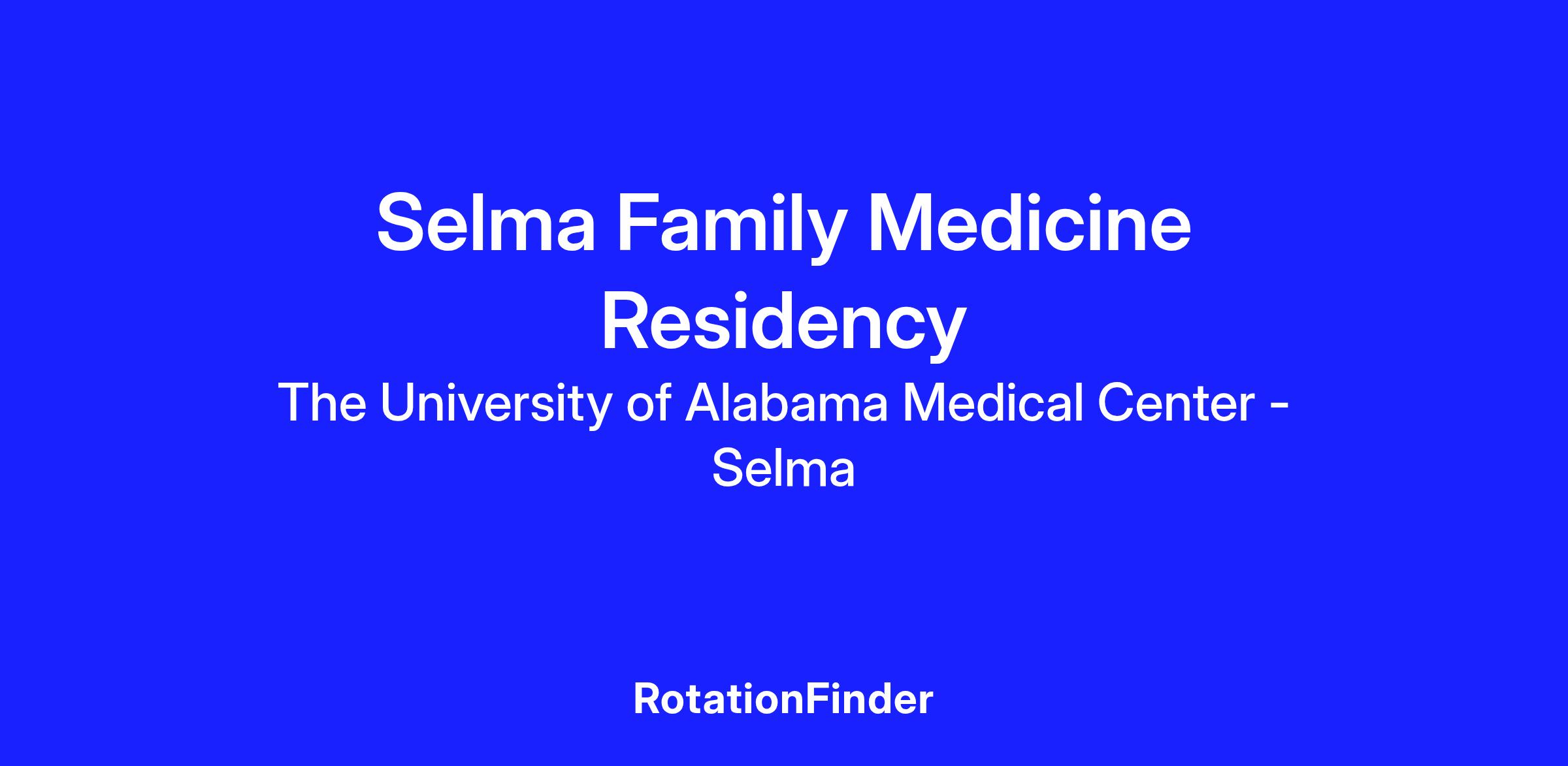 UAB Selma Family Medicine Residency Program has been training compassionate family physicians in Central Alabama for more than 45 years and is one of the few truly rural family medicine residency programs in the country. Our program combines knowledge and resources from a world class academic medical center with a hands-on community setting, and our residents treat a diverse patient population with a wide range of medical needs.