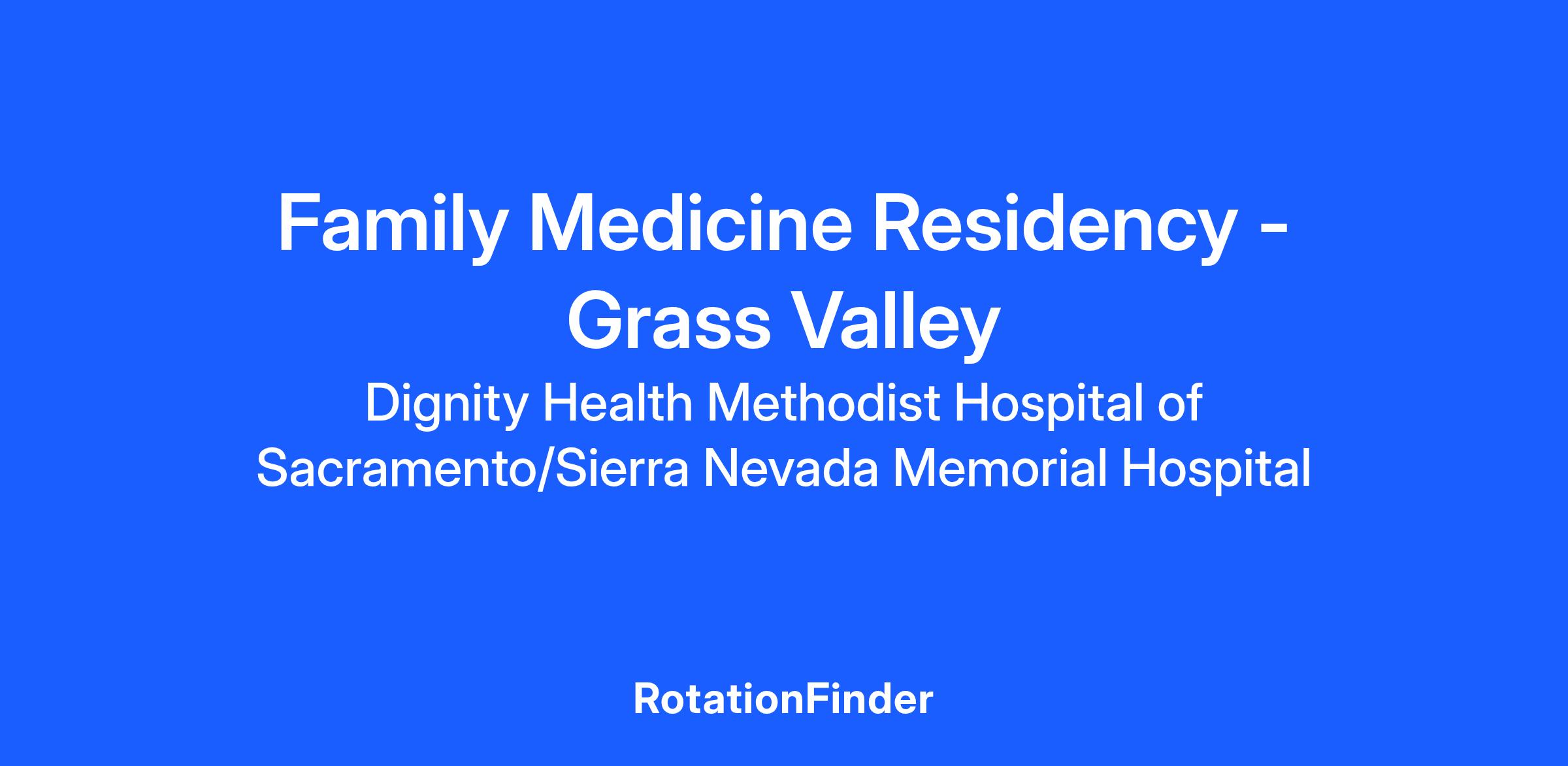 The Sierra Nevada Family Medicine Residency Program is an integrated rural training program based out of the Dignity Health Methodist Hospital of Sacramento Family Medicine Residency Program. Residents will complete their intern year (PGY-1) at Methodist Hospital and Mercy Family Medical Clinic in Sacramento, CA. In their 2nd and 3rd years (PGY-2 and PGY-3), residents will train in the beautiful, historic town of Grass Valley, CA at Chapa-De Indian Health Clinic (Tribal FQHC), Sierra Nevada Memorial Hospital and local subspecialty outpatient offices.