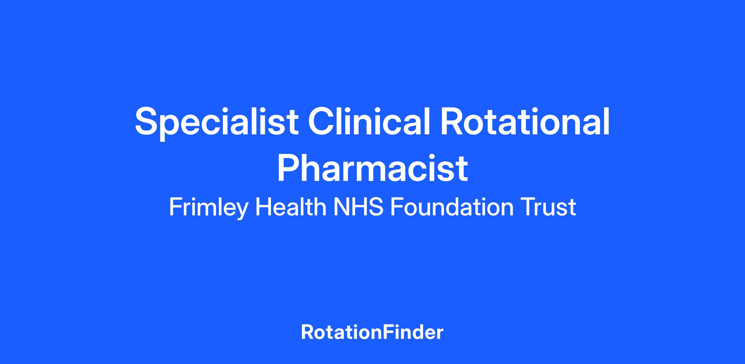 This is an exciting opportunity for an enthusiastic, motivated, and experienced pharmacist to join our dynamic and forward-thinking team at Frimley Park Hospital.