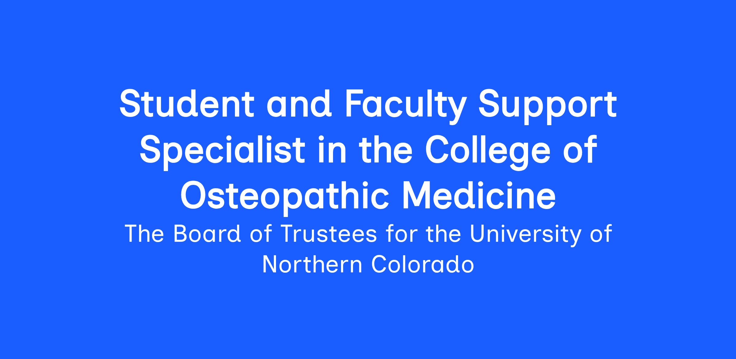 POSITION TITLE: Student and Faculty Support Specialist in the College of Osteopathic Medicine DEPARTMENT: Academic Affairs Office BENEFITS: UNC’s Career Hub |