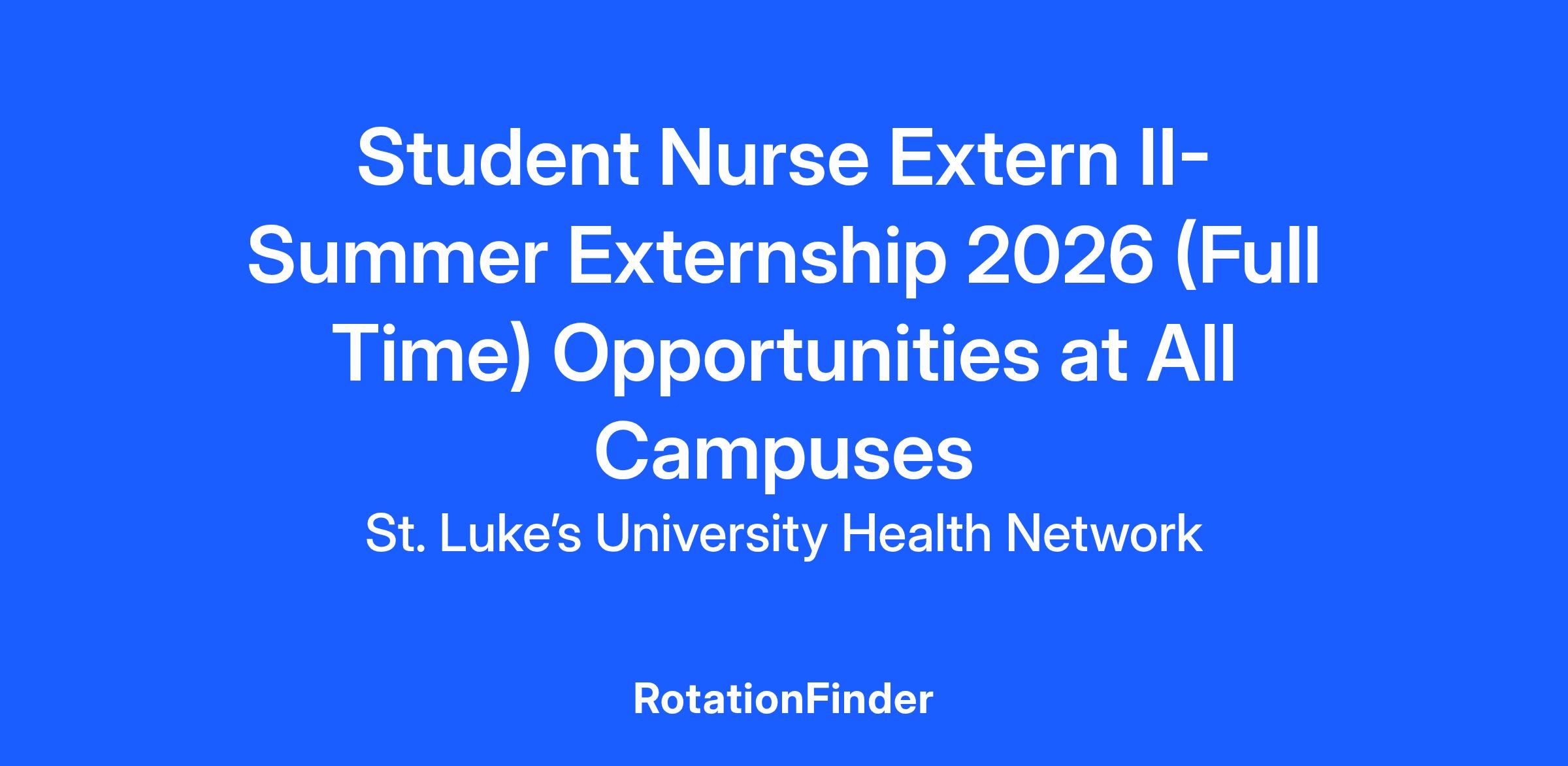 The Student Nurse Extern II Program is for nursing students Currently enrolled in a baccalaureate nursing program having successfully completed junior year and entering senior year of nursing program.