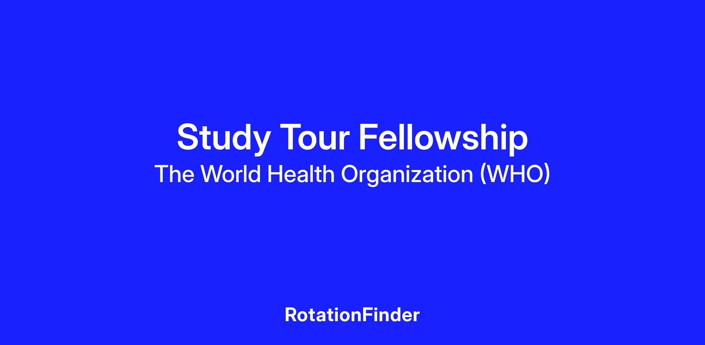 A study tour is a form of fellowship in which a group of health workers or scientists visits one or more countries to study local problems and methods of dealing with them. It is a fact-finding mission, an educational experience and an opportunity to establish international linkages and collaborations. Study tours can also take the form of tailor-made short-term training courses.