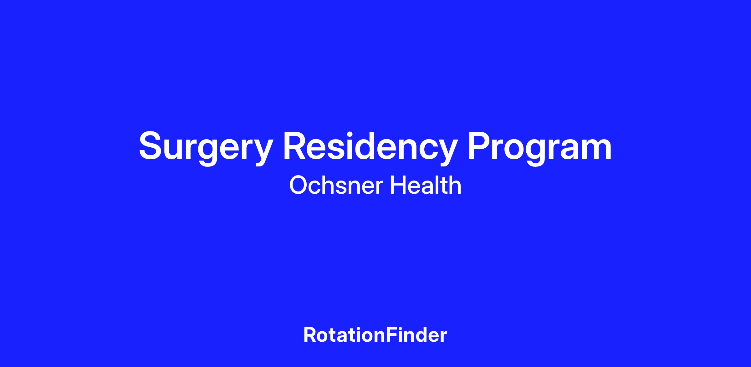 The Surgery Residency Program at Ochsner Health is a 5-year ACGME-accredited free-standing residency program. The Ochsner General Surgery Program is nonpyramidal, entering one preliminary and seven categorical PGY I interns, and graduating seven chief residents. Ochsner is located in the suburbs of New Orleans, close to the excitement of one of the nation's premier cities for food and entertainment but safely removed from the hectic pace of urban life. The mission of the Ochsner Surgery Program is to provide broad-based experience and training in all facets of general surgery practice and science. This is accomplished by providing an ideal mix of training venues, a talented and academically oriented staff, a well-planned educational curriculum, extensive research activity, regular resident-program director interaction and feedback, and outstanding fellowship and employment opportunities.