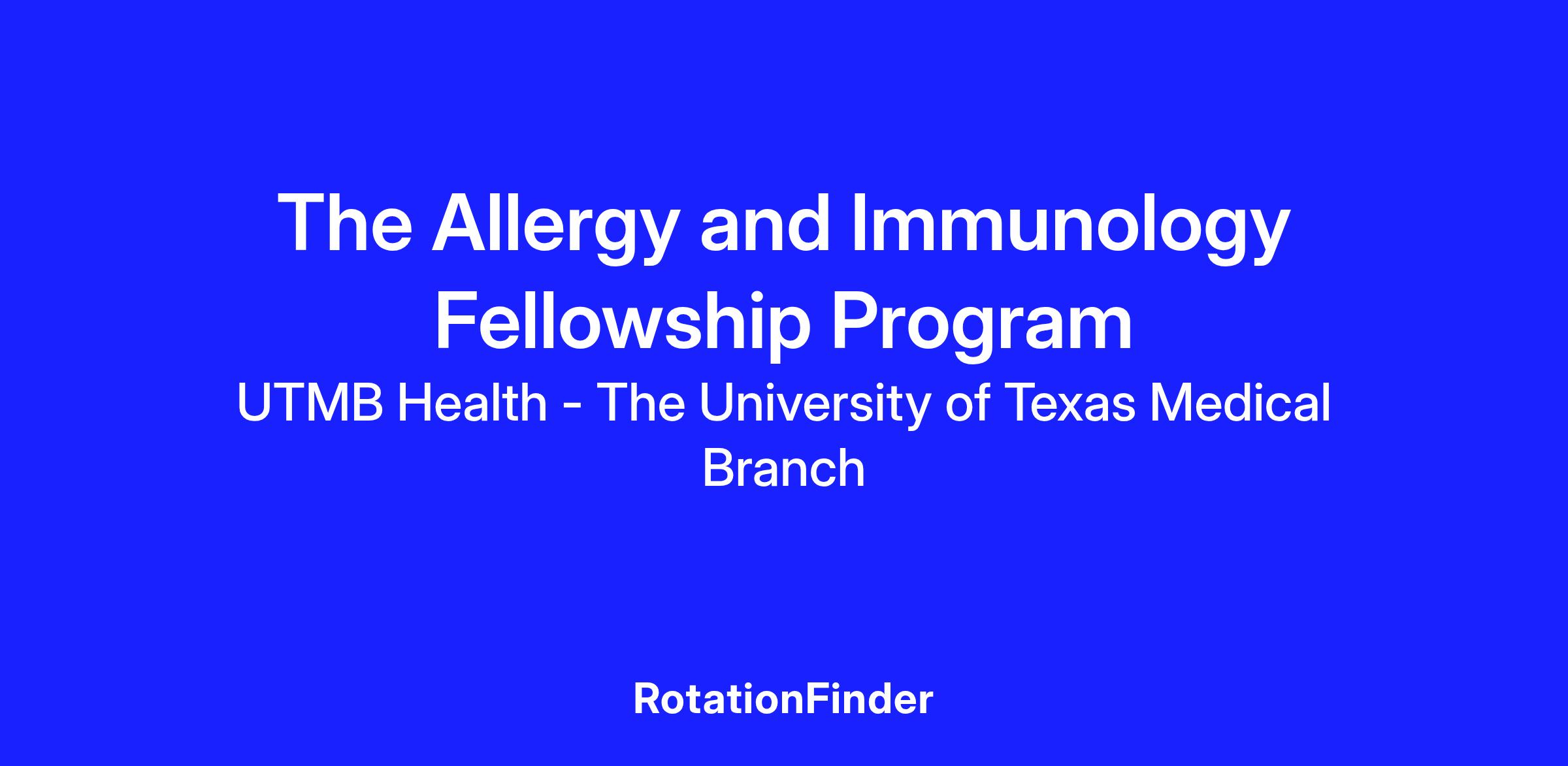 The Allergy and Immunology fellowship program at The University of Texas Medical Branch (UTMB) at Galveston is a two-year training accredited by the Accreditation Council for Graduate Medical Education (ACGME) program. This is a conjoint program offered by the Allergy & Immunology Division of the Department of Internal Medicine and the Division of Infectious Diseases and Immunology of the Department of Pediatrics.
