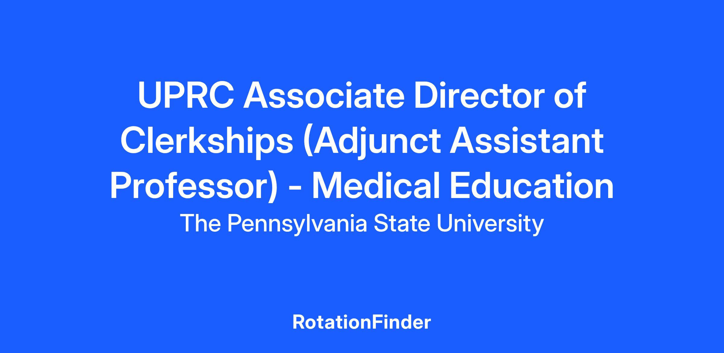 The Penn State College of Medicine is seeking a dedicated and experienced individual to serve as the Associate Director (Adjunct Assistant Professor) of Phase II undergraduate medical curriculum operations at the University Park Regional Campus (UPRC). This position ensures high-quality and standardized clinical education for medical students during Phase II (core clerkships) of their education. The Associate Director will collaborate primarily with Mt Nittany Medical Center. Additional collaborations will include community preceptors, Penn Highlands, Altoona and State College VA systems and faculty and clerkship directors based in Hershey. This role will ensure consistent clerkship experiences, support student development and promote faculty engagement.